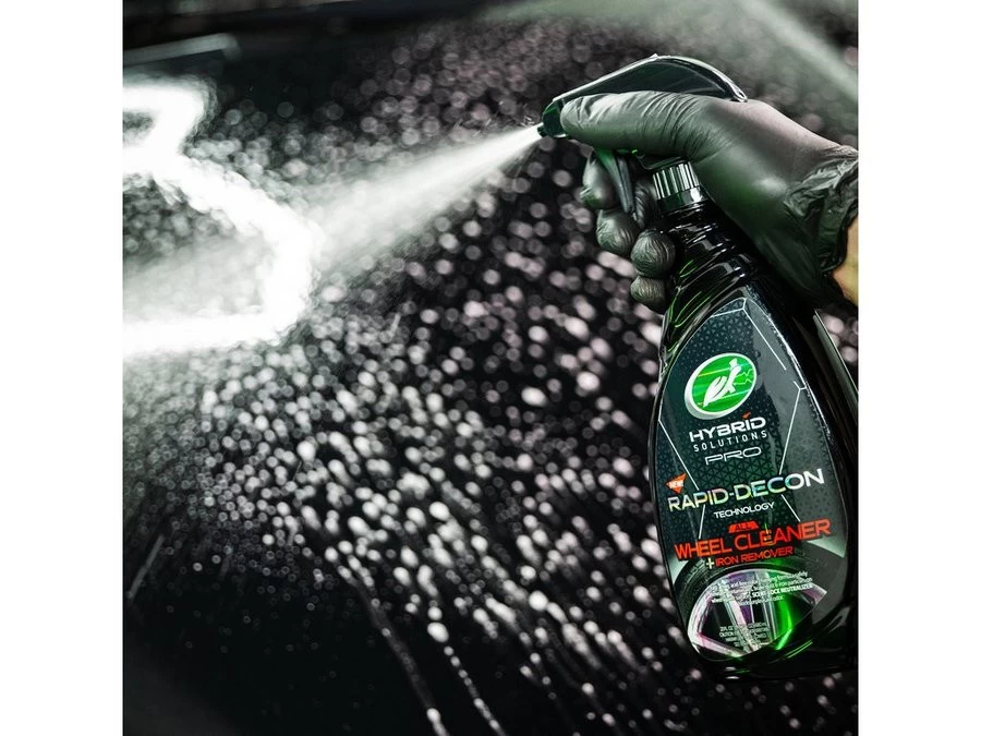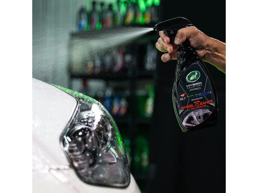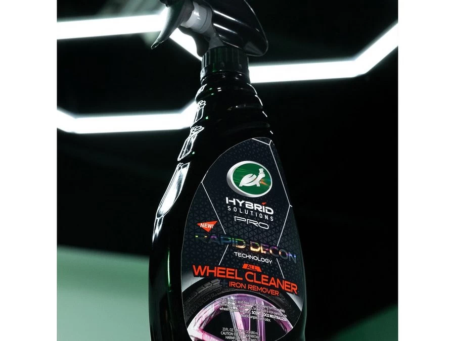 Turtle Wax HS All Wheel Cleaner + Iron Remover levert krachtigste prestaties die veilig zijn voor alle velgen en gelakte oppervlakken. Het verwijdert snel op ijzer gebaseerde verontreinigingen en industriële neerslag en tegelijkertijd lost het diepe verontreinigingen zoals remstof en ijzeroxide op. Deze formule voor diepe reiniging wordt paars terwijl het hardnekkige verontreinigingen en straatvuil zachtjes losmaakt. De Rapid-Decon Technology gecombineerd met geur-lock neutralisatie geeft zowel professionals als autoliefhebbers een geweldige ervaring en sneller resultaat!          Â